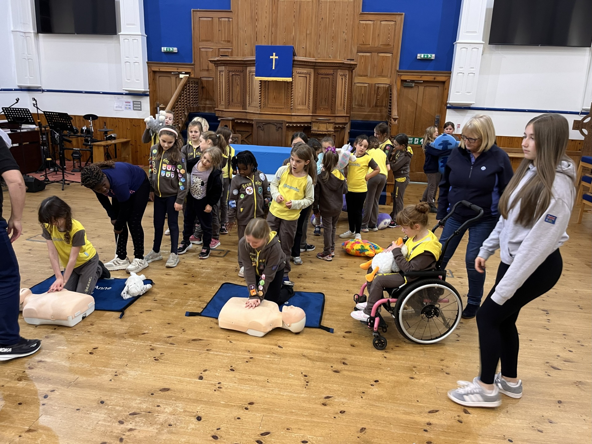 The session introduced the Brownies to the basics of CPR (Cardiopulmonary Resuscitation) in a fun and accessible way. Using their biggest, fluffiest teddies and soft toys, the young girls practised how to check for responsiveness, call for help, and give chest compressions. It was a brilliant way to make a serious skill memorable and enjoyable.
